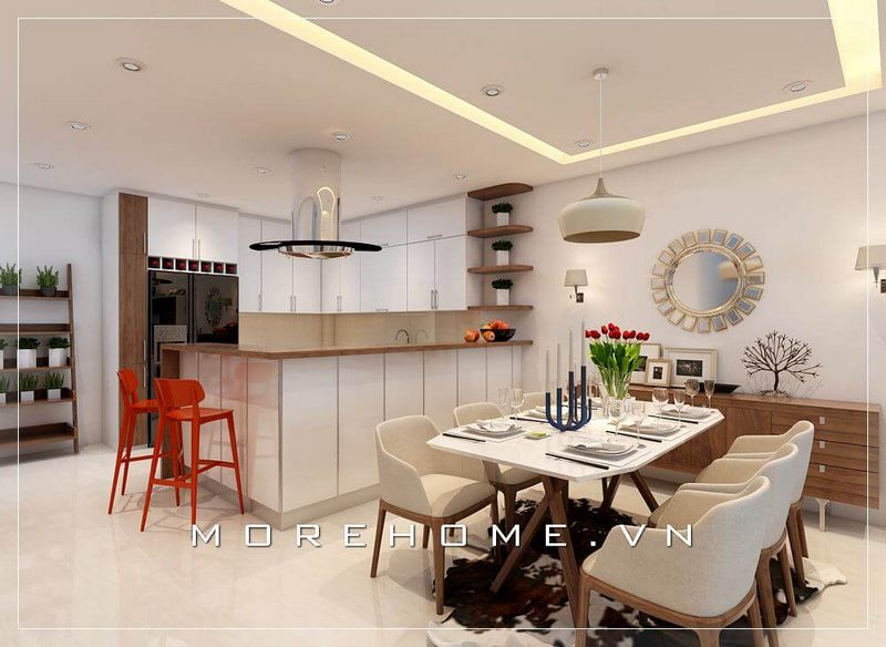 Bàn ăn gỗ công nghiệp làm không gian phòng ăn thêm sang trọng
