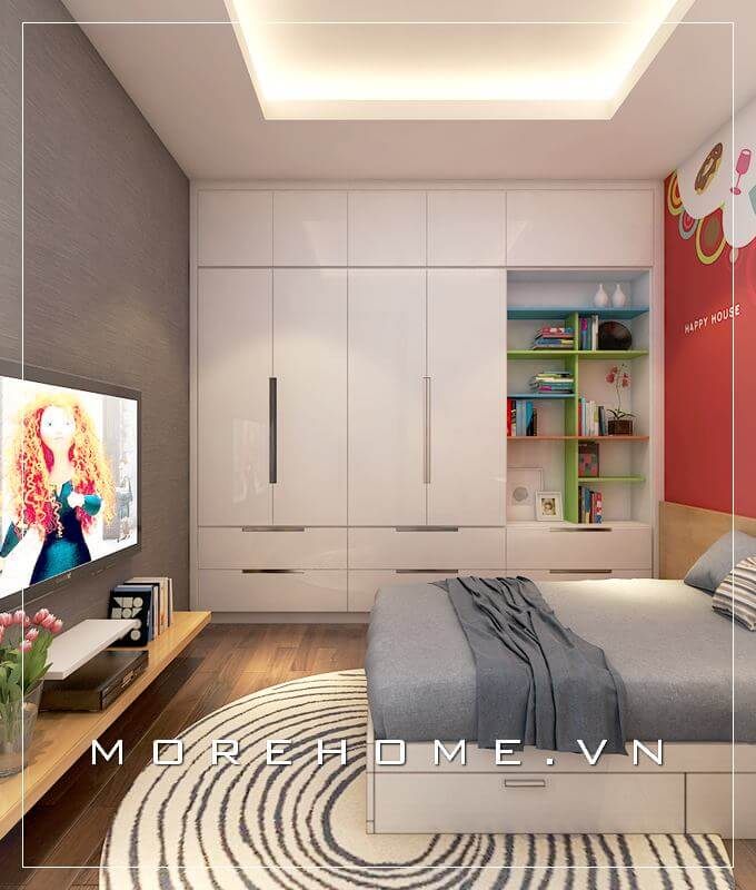 Lựa chọn tủ quần áo gỗ công nghiệp màu trắng cho phòng ngủ bé gái mang lại cho căn phòng thêm gọn gàng và tiện ích hơn