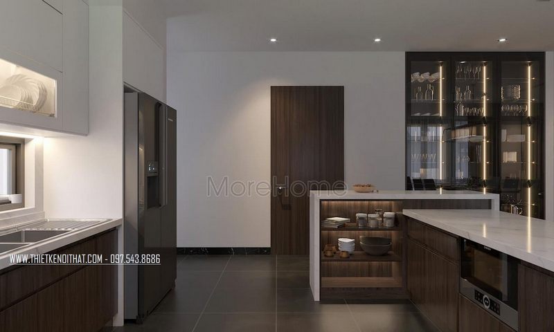 Thi công nội thất phòng bếp biệt thự với bếp đảo hiện đại
