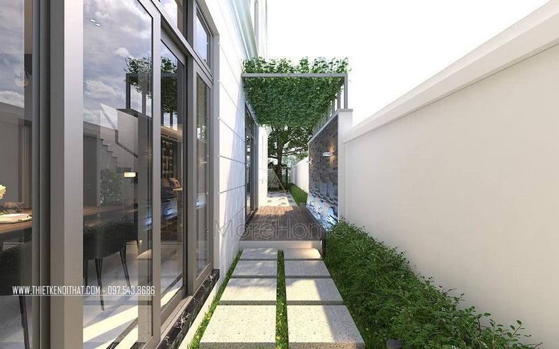 Một không gian sống xanh thiết kế kiến trúc với những dàn cây cảnh, hoa đẹp mắt, bầu không khí trong lành mát mẻ tạo sự thoải mái dễ chịu.
