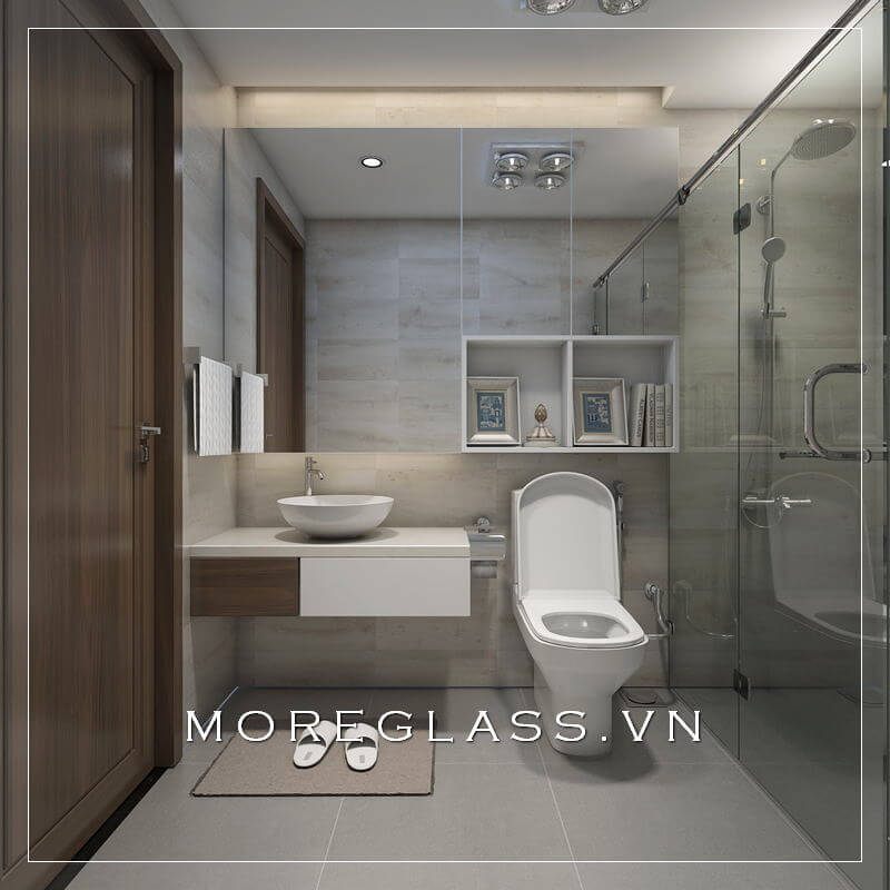 Tham khảo mẫu phòng vệ sinh nhỏ đẹp 3m2 kết hợp phòng tắm kính cường lực cao cấp gam màu trắng xám tính tế được nhiều gia chủ yếu thích và hướng đến.