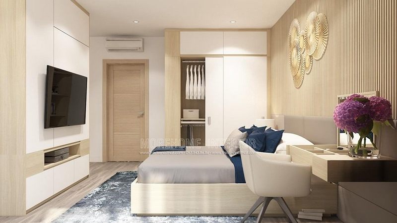 Phòng ngủ được thiết kế đẹp mắt đã gây ấn tượng, với sự bày trí khoa học và thẩm mỹ hiện đại.
